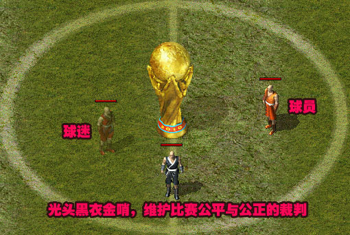 世界杯的赛场,除了有球技精湛的参赛球员,热情欢呼的忠实球迷,当然更少不了客观、公正、专业的裁判。国际裁判中的一哥,拥有“足坛第一哨”的意大利金哨科纳多,因为执法严格公正而在世界上享有盛名,并成为其他裁判的榜样。在即将开赛的跨游戏战场上,也将出现光头、黑衣的金哨裁判,他就像鼎鼎有名的科纳多,负责并监督整场比赛的公平与公正,保证比赛有条不紊的进行。