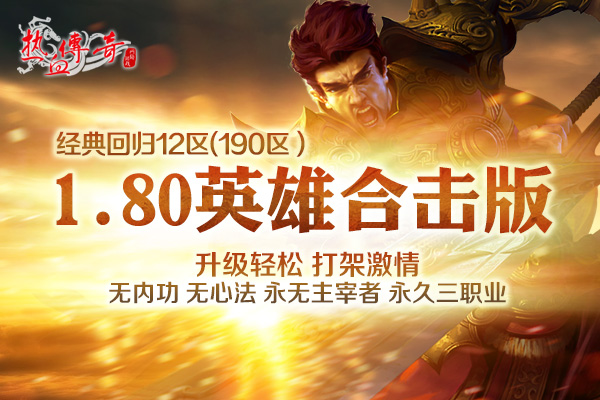 1.80英雄合击版,是非常受玩家喜爱,口碑好、人气爆的传奇版本!《热血传奇》向广大玩家郑重承诺:无内功、无心法、永无主宰者,永久三职业!四大承诺打造绿色环境。