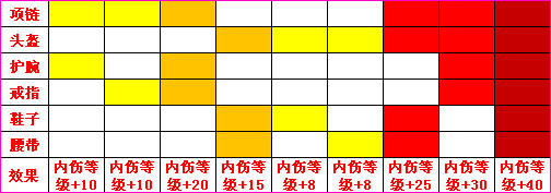 必杀首饰每件都有内伤等级,套装则有更高的内伤等级。内伤等级越高,扣除攻击目标的内力值也就越多。