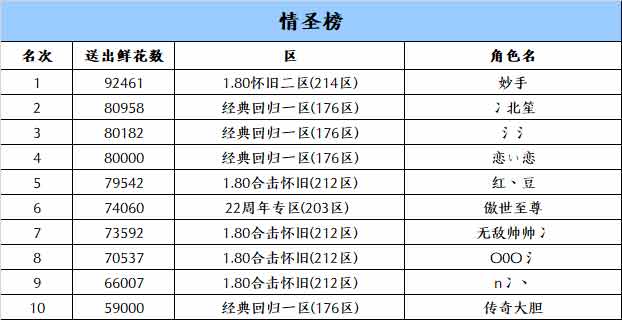 再次祝贺本期“十大女神”和“十大情圣”,愿你们在《热血传奇》继续书写属于自己的传奇故事。愿爱与传奇永远相伴!