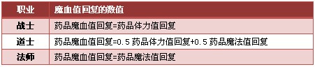 各职业药品魔血值回复数值: