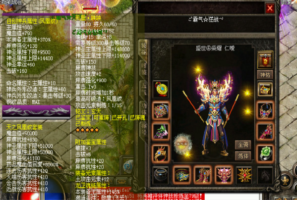 通过 ご霸气☆狂战ベ 的坚持不懈的努力提升和修炼,目前 ご霸气☆狂战ベ 的主号心法599级,排名热血传奇5区刺客榜第6名, ご霸气☆狂战ベ 的法英雄 ご霸气☆天下ご 心法489级,排名热血传奇5区英雄总榜第11名, ご霸气☆狂战ベ 的战英雄 ご霸气☆天下ベ 心法489级,排名热血传奇5区英雄总榜第12名。 ご霸气☆狂战ベ 主号装备是魔血复活护腕,首饰是最新的热血装备神凤刺套,十一级军鼓刺,神龙印刺,至尊复生戒指,灵凤刺甲,钢纹是天之凤凰纹套,主号的5元朝气是满级的12重,ご霸气☆狂战ベ 的法英雄 ご霸气☆天下ご 装备是魔血复活护腕,首饰是斗战圣佛套,神羊魔衣,冰石乾坤腰带,时装是白日门轩辕,英雄的炼体洗髓也是满级,刺法组合是风靡一时的组合,而 ご霸气☆狂战ベ 通过装备和内在的神圣和防御的巧妙搭配,使他这个的刺法的威力能发挥出最好的状态,主号近身攻击,法英雄远程攻击,一远一近,非常灵活多变,在游戏PK的时候能更有效的防御与进攻。