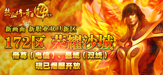 172区“荣耀沙城”将汇聚传奇经典版本,尽享传奇畅爽PK!快来跟我们一起开启2015年的华美篇章!
