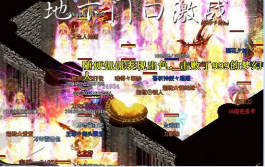 5分钟等待时间刚一结束,各路的人马纷纷直奔跨服盟重城,从镇魔守将下地开始了激烈的战斗。地下小房间战火熊熊燃烧, 〓纵横玛法〓 会的人抢占先机冲向了小道上口。两位会长 卢清扬 和 辉煌八年 一致商定,本次跨服夺宝绝不在门口花过多的时间和敌人纠缠,重点是地下小道和地下2进3口2 道关口严阵以待,会里的大法师 卢清扬 回眸ぐ醉倾城 羽羽宝贝 天羽 等将白火从地下小房间门口至地下一龙和小道上口,为行会的所有地下战斗的将士们铺出了一条绿色通道。