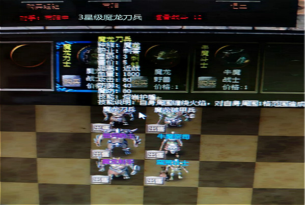 每场随机刷新5个棋子供选择购买,没有满意的棋子就可以用金币刷新。棋子都有自己的名字牛魔侍卫 、蛮荒岛民、 魔龙刺客、 组玛护卫、 半兽统领、 蛮荒之主、虹魔教主、蛮荒之主、组玛教主、魔龙教主等,棋子有不同的职业、星级、血量、攻击、防御、魔防和技能。