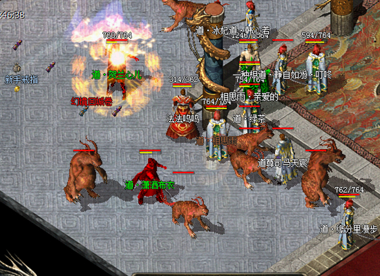道士对战的第一组是 叮咚 VS 悠闲 ,悠闲 是我们社骨灰级的存在,就连我们的社长大人也是要尊称其一声 师姑 ,而其本身也是在盛趣百区混迹已久的实力派,享有百区第一美女战的美名。而 叮咚 则是我们社的新晋记者,其实力我们还不得而知,只闻她在白金典藏享有“嗜血玫瑰”的吓人称谓。(吓,读第四声)可想而知,这两位的碰撞会有怎样的视觉效果呢?事实却让我们大跌眼镜,我们的实力派 师姑 愣是把远程攻击的技能道给生生的憋成近战武士,我都替她的道士喊冤呐,虽说她的龙纹加了20点的攻击,可是在3-6的道术点面前,就这样追着砍,能不成为挨切的菜吗?第一组的赢家豪无悬念的由我们的新晋记者 叮咚 轻松拿下。躺在地上的 师姑,你冷吗?地上怪凉的,赶紧起来吧!回头再感冒了。