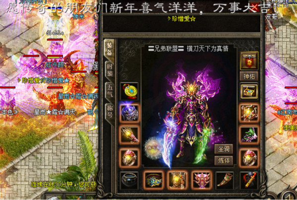 星雨★霜☆满天:难忘热血传奇的兄弟情,难舍玛法大陆的儿女情。给传奇的朋友们拜年送祝福,祝大家合家欢乐!