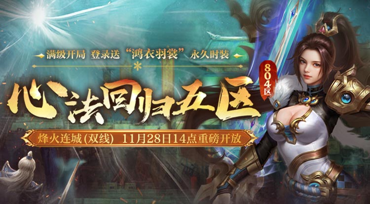 心法回归五区(804区)将采用满级开局的版本,主体和英雄的等级和内功等级全部为999级!不再需要挥汗如雨的升级打怪练等级,只要上线就能感受激情PK的淋漓畅快!